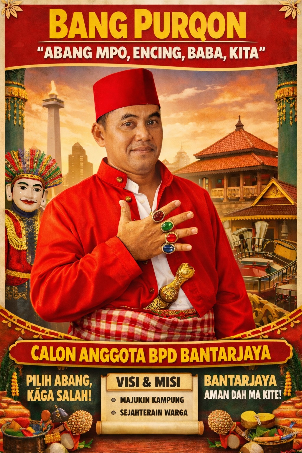Dengan slogan “Pilih Abang, kaga salah!”, Bang Purqon optimistis mampu meraih dukungan masyarakat, khususnya di wilayah Dusun 2 yang menjadi basis utamanya.