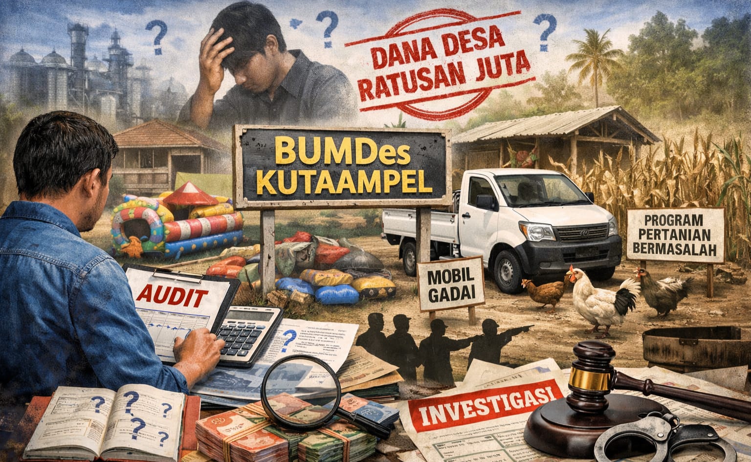 Ilustrasi: BUMDes Kutaampel menjadi sorotan publik setelah ratusan juta rupiah dana desa digelontorkan, namun sejumlah program usaha dilaporkan mandek, kejelasan aset dipertanyakan, dan transparansi pengelolaan dinilai belum terbuka di mata masyarakat.