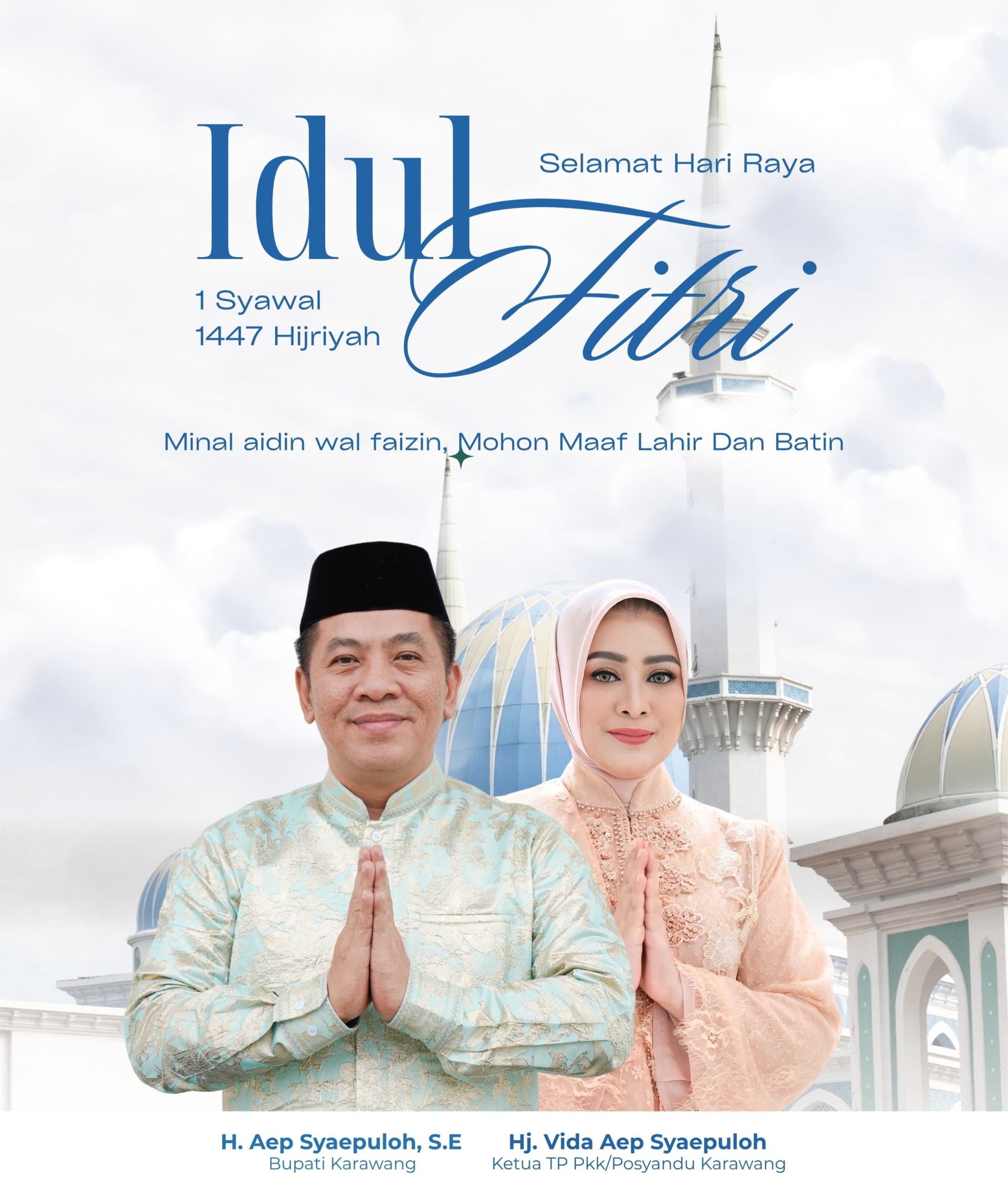 KARAWANG, KabarGEMPAR.com – Dalam momentum Hari Raya Idul Fitri 1447 Hijriah, Bupati Karawang H. Aep Syaepuloh, S.E bersama Ketua TP PKK Karawang, Hj. Vida Aep Syaepuloh, menyampaikan ucapan selamat kepada seluruh masyarakat Kabupaten Karawang.