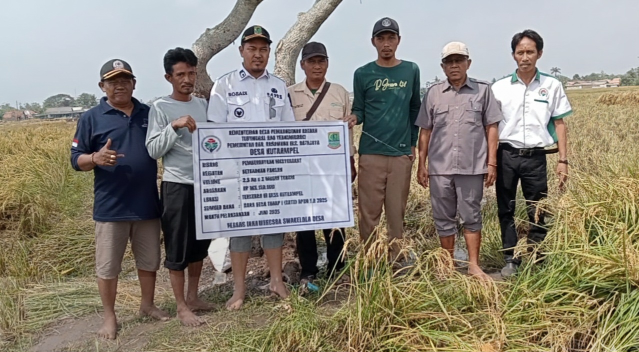 Dalam kesempatan itu, Kepala Desa Kutaampel Rosadi Gunawan bersama perangkat desa, Ketua BPD dan perwakilan kelompok tani tampak hadir di lokasi panen yang berada di Lolohan II, wilayah Desa Kutaampel. Mereka memegang spanduk resmi program yang menunjukkan transparansi penggunaan anggaran sebesar Rp165.150.000, bersumber dari Dana Desa tahap I tahun anggaran 2025.
