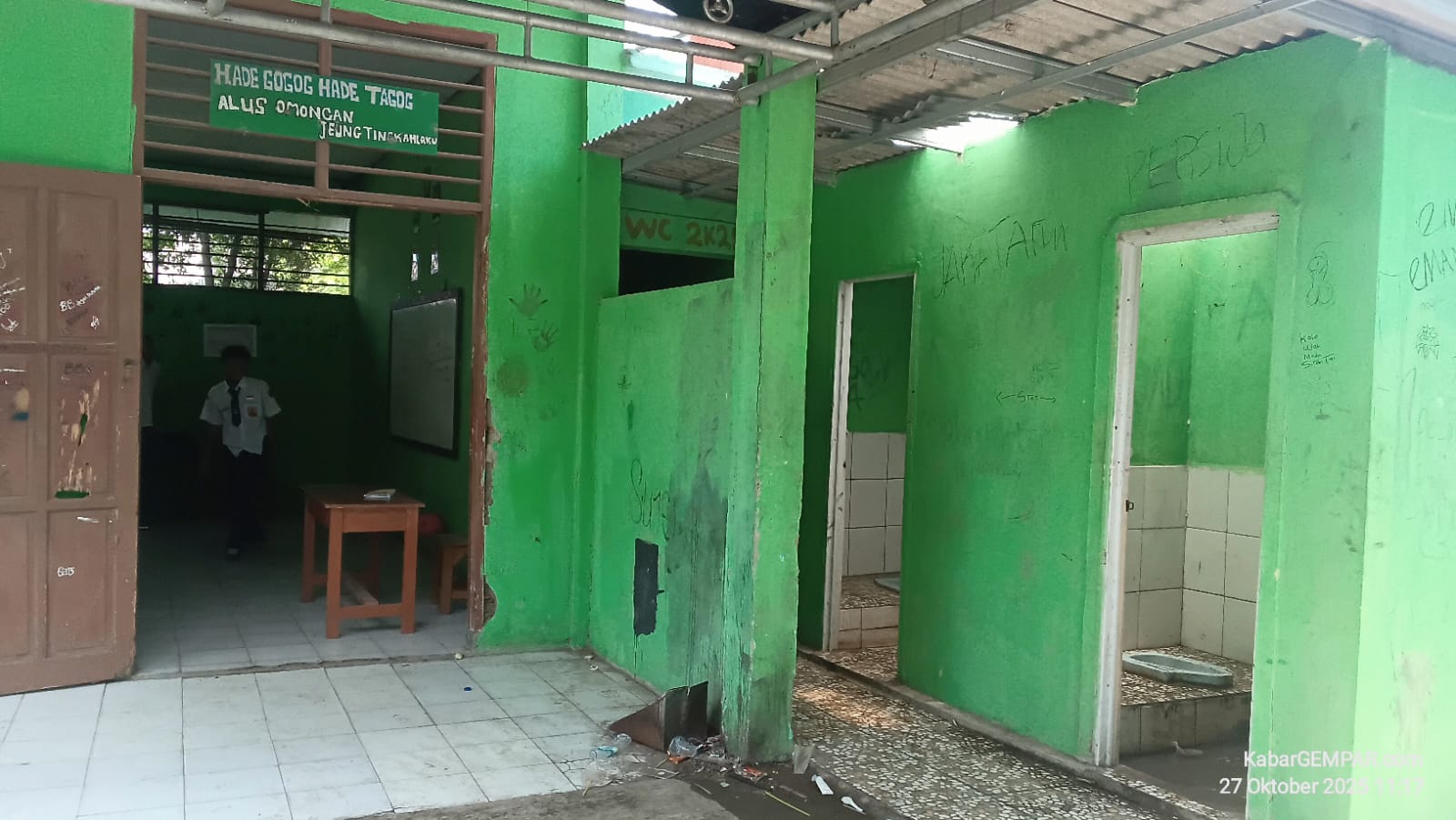Beberapa area sekolah juga terlihat tidak terawat dan kotor, termasuk bagian sekitar toilet yang tampak berlumut, berbau, dan minim penerangan.