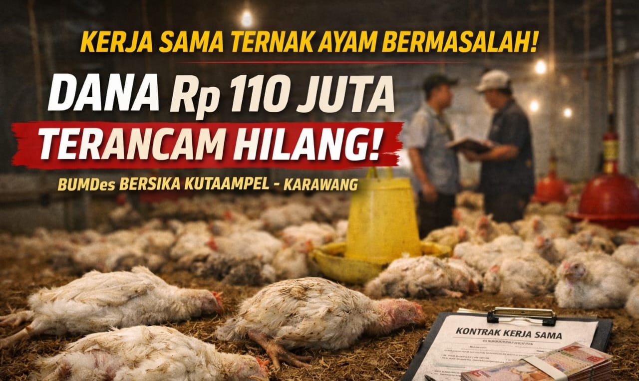 KARAWANG | KabarGEMPAR.com – Dugaan carut-marut pengelolaan Badan Usaha Milik Desa (BUMDes) Bersika Kutaampel, Kecamatan Batujaya, Kabupaten Karawang, kembali mencuat. Kali ini, sorotan publik mengarah pada kerja sama usaha ternak ayam senilai Rp110 juta yang diduga tidak berjalan sesuai perencanaan dan berpotensi menimbulkan kerugian keuangan desa.