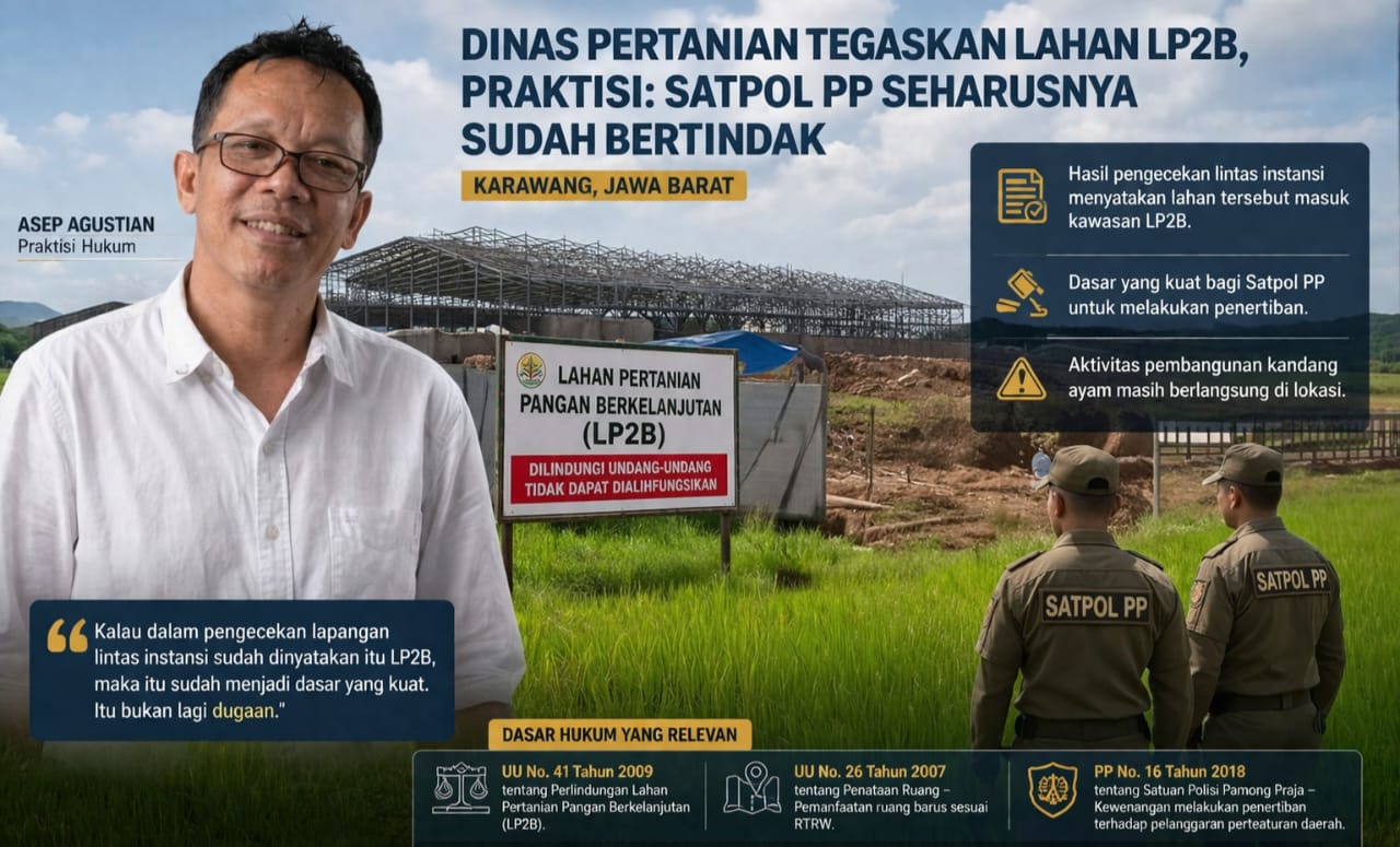 KARAWANG | KabarGEMPAR.com – Penanganan dugaan pelanggaran pembangunan kandang ayam di Kecamatan Pedes, Kabupaten Karawang, Jawa Barat, menuai sorotan. Aparat penegak peraturan daerah dinilai belum bertindak tegas meski status lahan telah dinyatakan masuk dalam kawasan Lahan Pertanian Pangan Berkelanjutan (LP2B).