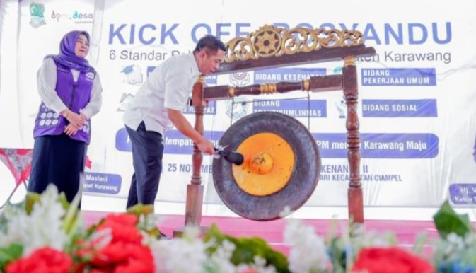 KARAWANG | KabarGEMPAR.com – Pemerintah Kabupaten Karawang meresmikan Kick Off Posyandu 6 Standar Pelayanan Minimal (SPM) di Desa Mulyasari, Kecamatan Ciampel, Selasa (25/11/2025). Kegiatan ini menjadi momentum penting dalam upaya transformasi layanan dasar yang lebih komprehensif, sejalan dengan visi “Karawang Maju”.
