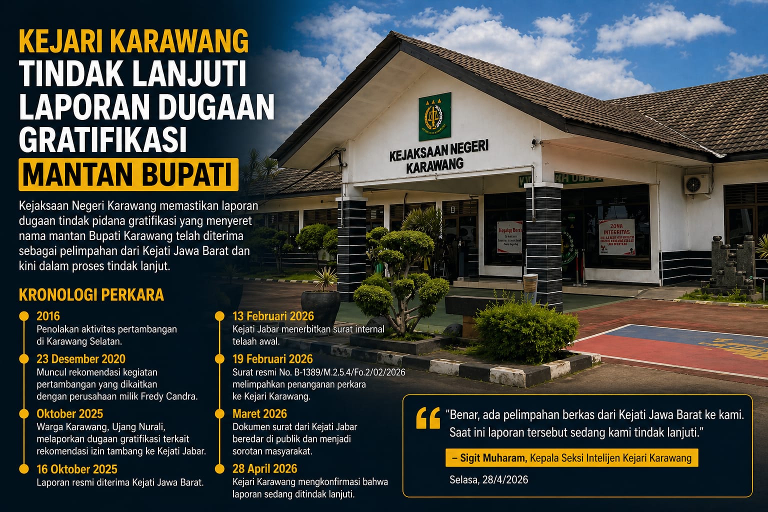 Dengan konfirmasi resmi dari Kejari Karawang pada akhir April 2026, perkara ini kini memasuki fase yang paling dinantikan publik: tindak lanjut substantif.
