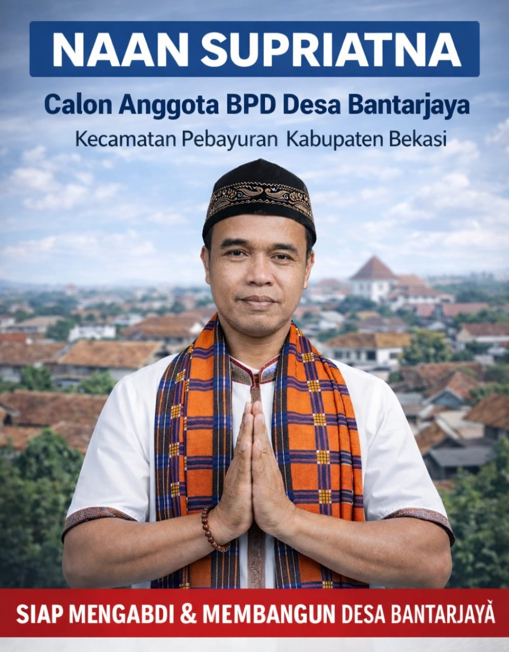 Naan Supriatna, calon anggota BPD Desa Bantarjaya, hadir membawa semangat pengabdian dan komitmen membangun desa yang lebih maju, transparan, dan sejahtera. “Siap Mengabdi & Membangun Desa Bantarjaya.”