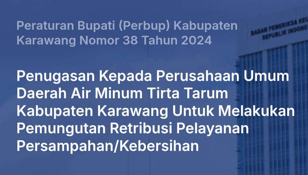 KARAWANG | KabarGEMPAR.com – Pemerintah Kabupaten Karawang menuai kritik setelah menerbitkan Peraturan Bupati (Perbup) No. 38 Tahun 2024 yang menugaskan Perumdam Tirta Tarum memungut retribusi pelayanan persampahan/kebersihan kepada pelanggan PDAM. Kebijakan ini dinilai bertentangan dengan Peraturan Daerah (Perda) No. 17 Tahun 2023 dan Undang-Undang No. 1 Tahun 2022 tentang Hubungan Keuangan antara Pemerintah Pusat dan Daerah.