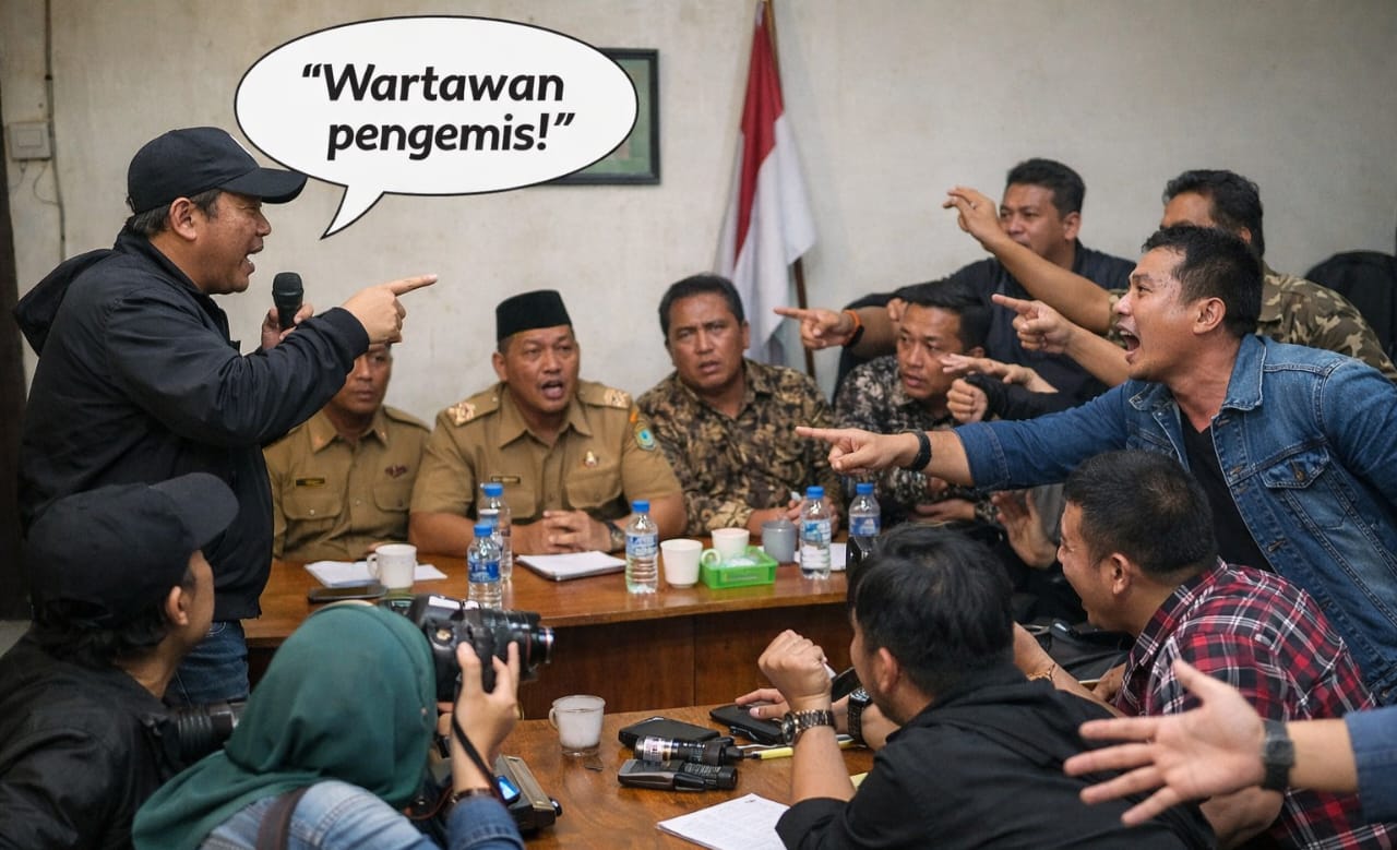 Ilustrasi: Pernyataan “wartawan pengemis” dalam forum resmi di Banyusari memicu reaksi keras kalangan jurnalis. Praktisi hukum Asep Agustian menilai ucapan tersebut berpotensi melanggar hukum.