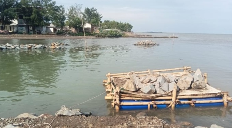 Lokasi proyek penahan abrasi di wilayah Muara Pakisjaya, Kabupaten Karawang.