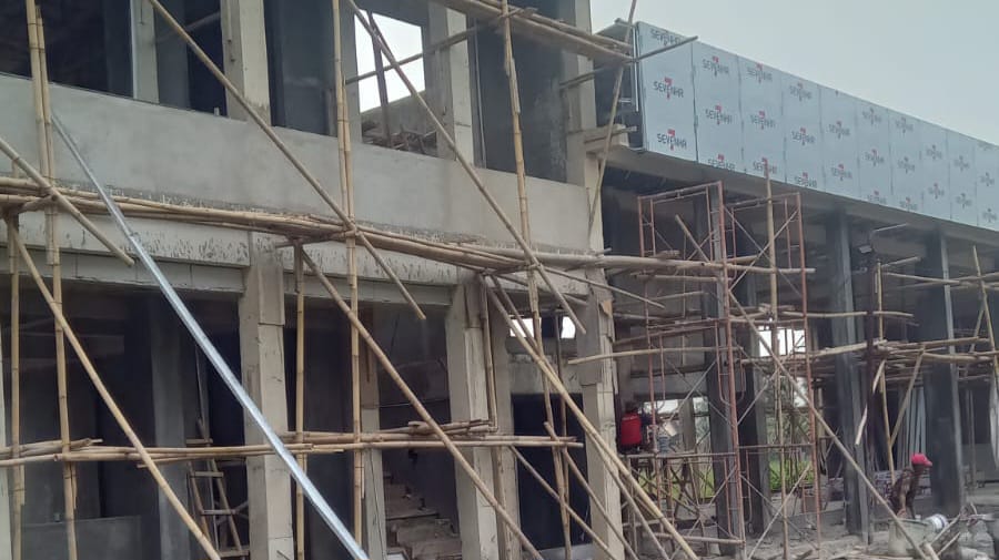 Pantauan KabarGEMPAR.com di lokasi proyek memperlihatkan struktur gedung bertingkat masih berada pada tahap pekerjaan konstruksi utama. Perancah bambu dan rangka besi masih terpasang, sementara sejumlah bagian bangunan belum memasuki fase penyelesaian akhir (finishing).